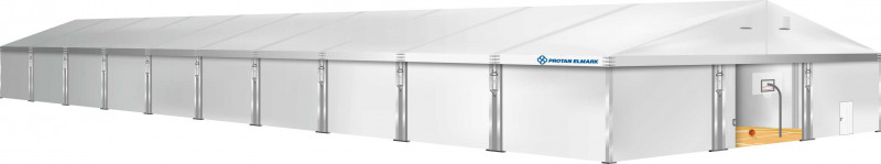 Sporttältet i Protan Elmarks erbjudande är en kombination av högsta kvalitet med ett attraktivt pris. Den lätta idrottshallen är enkel att installera och fungerar på alla typer av ytor. Protan Elmarks stora utbud gör det möjligt att välja en hall gjord av sandwichpaneler när det gäller storlek och tak.